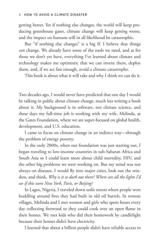 Bill Gates has spent a decade investigating the causes and effects of climate change. With the help of experts in the fields of physics, chemistry, biology, engineering, political science, and finance, he has focused on what must be done in to stop the planet's slide toward certain environmental disaster. In this book, he not only explains why we need to work toward net-zero emissions of greenhouse gases, but also details what we need to do to achieve this profoundly important goal.