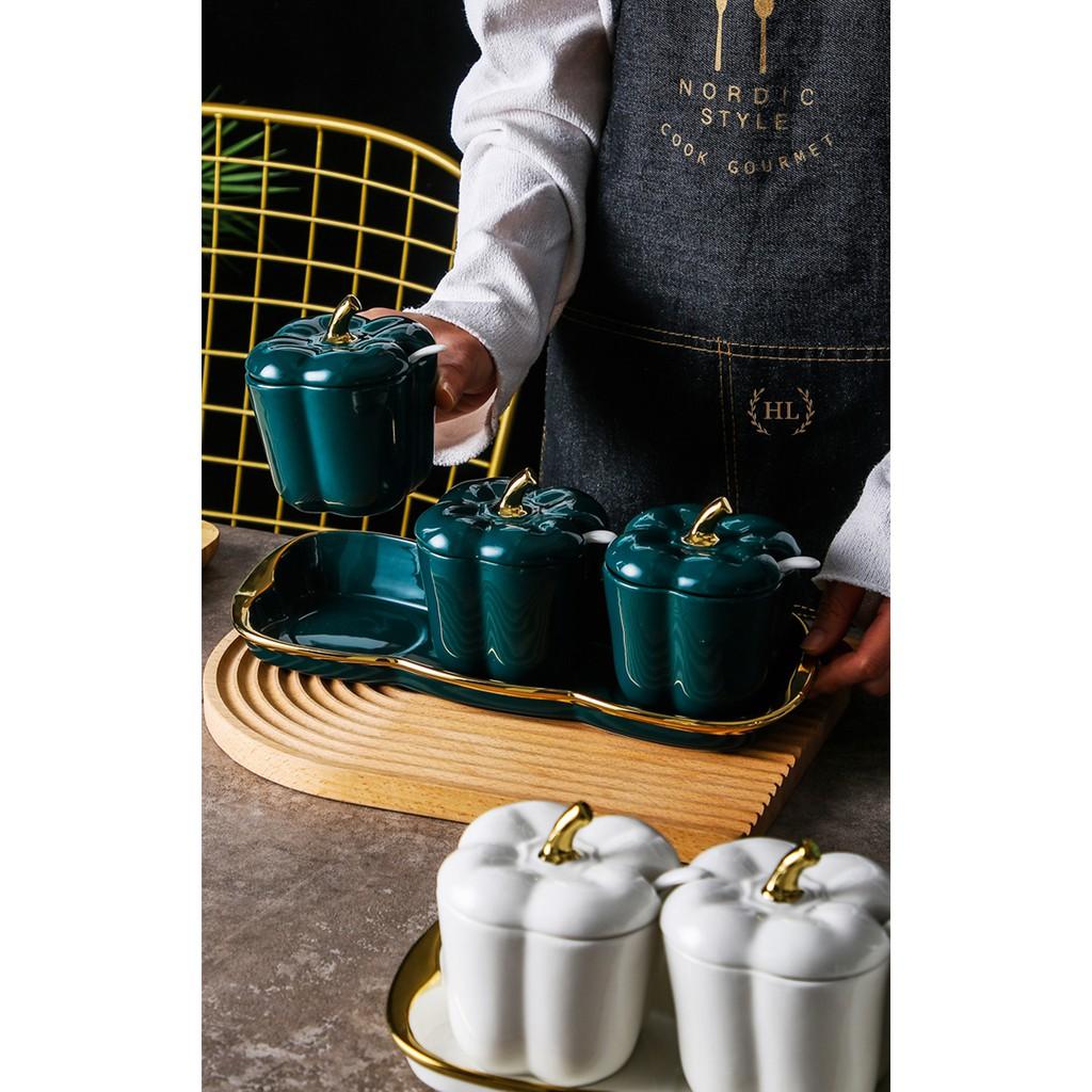 Bộ hũ gia vị sứ - lọ đựng gia vị sứ cao cấp Sapin