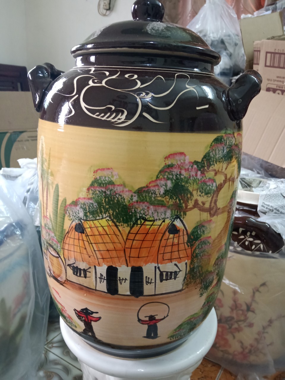 ✨Hũ đựng rượu gạo Bát Tràng vẽ phong cảnh loại 20L