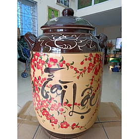 Hũ đựng rượu gạo gốm sứ Bát Tràng tài lộc hoa đào loại 15LHũ đựng rượu gạo gốm sứ Bát Tràng tài lộc hoa đào loại 15L