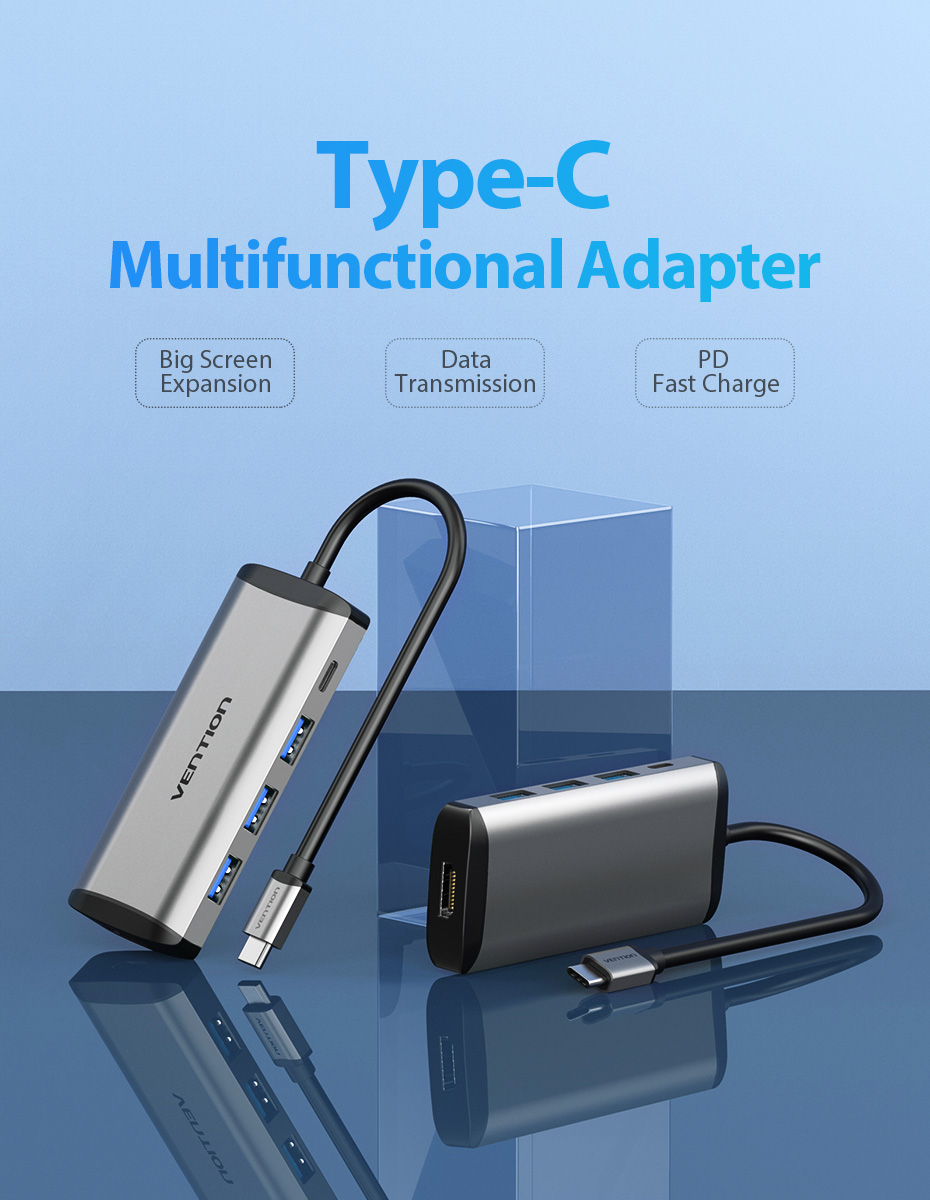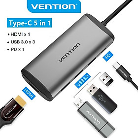✨HUB chuyển đổi USB Type-C 5 in 1 Vention - HDMI + USB 3.0*3 + PD ( 87W) - Hàng chính hãng