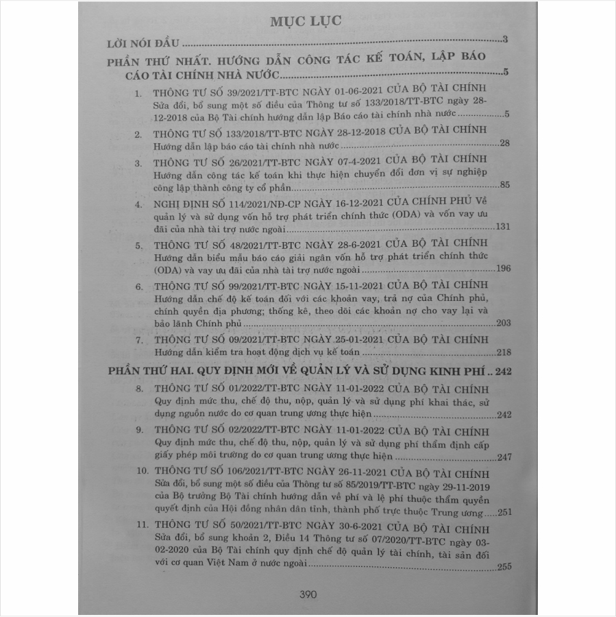- Thông tư 39/2021/TT-BTC về việc sửa đổi, bổ sung một số điều của Thông tư 133/2018/TT-BTC ngày 28-12-2018 của Bộ Tài chính hướng dẫn lập Báo cáo tài chính Nhà nước.