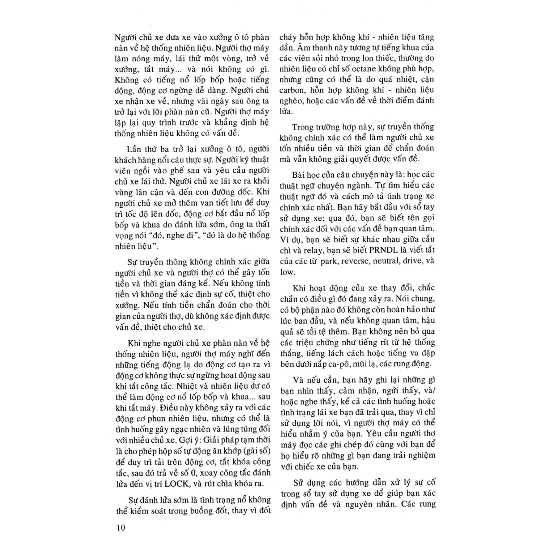 Sách được viết dưới dạng cẩm nang dành cho tài xế, gồm 46 bài thực hành và các lý thuyết cơ bản, có thể giúp các bạn chẩn đoán, sửa chữa và bảo trì chiếc xe thân yêu của mình.