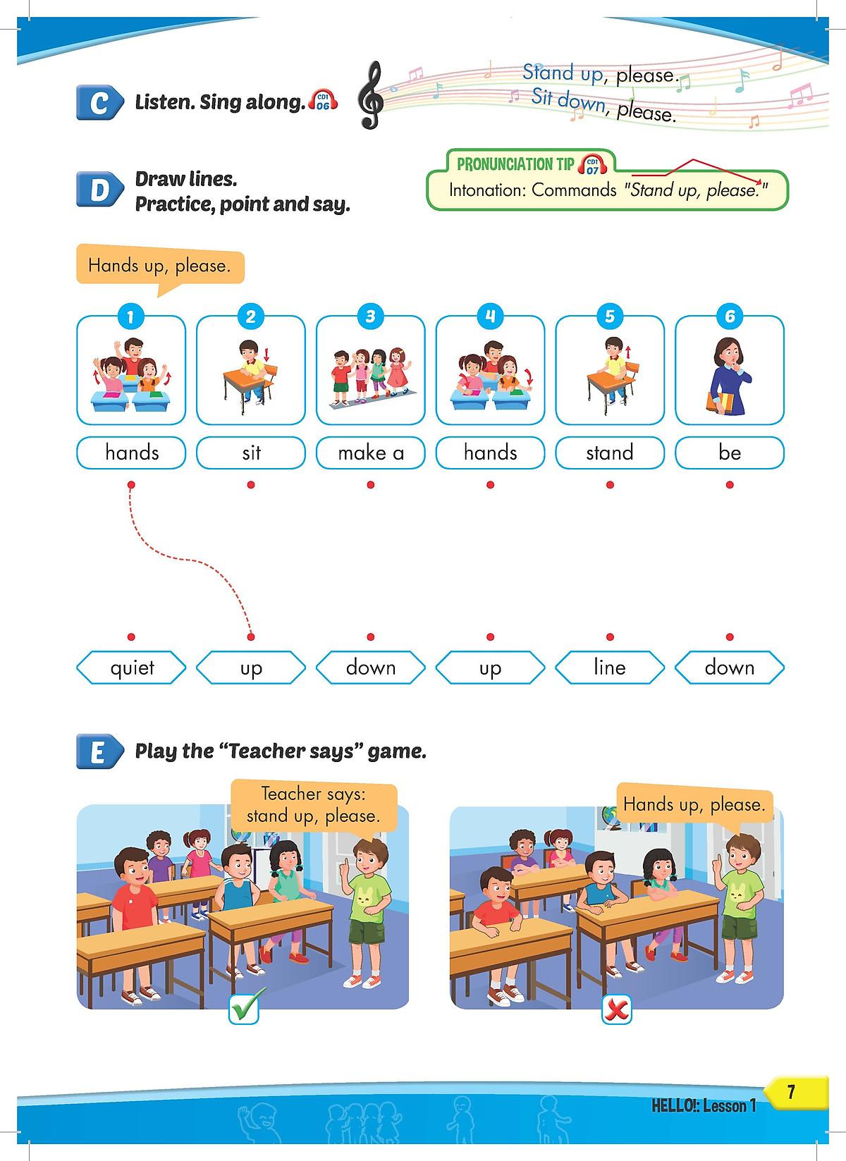 Catchy songs, colorful comic strips, and fun games catch students' interest.