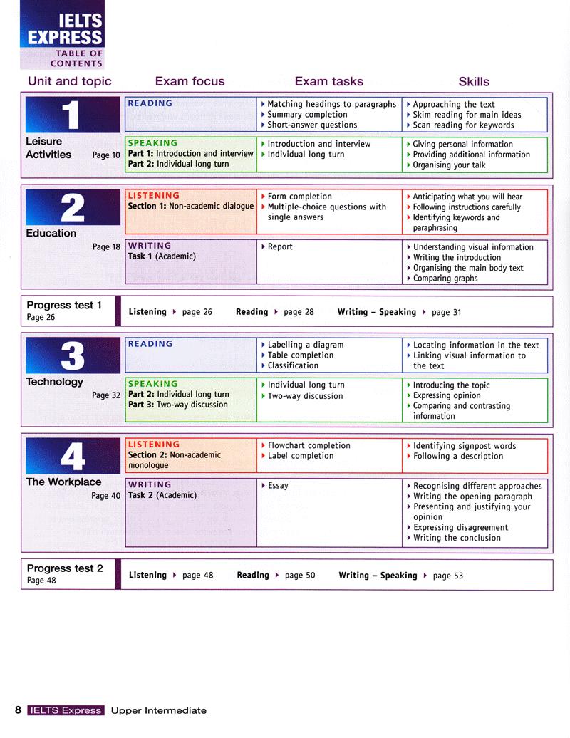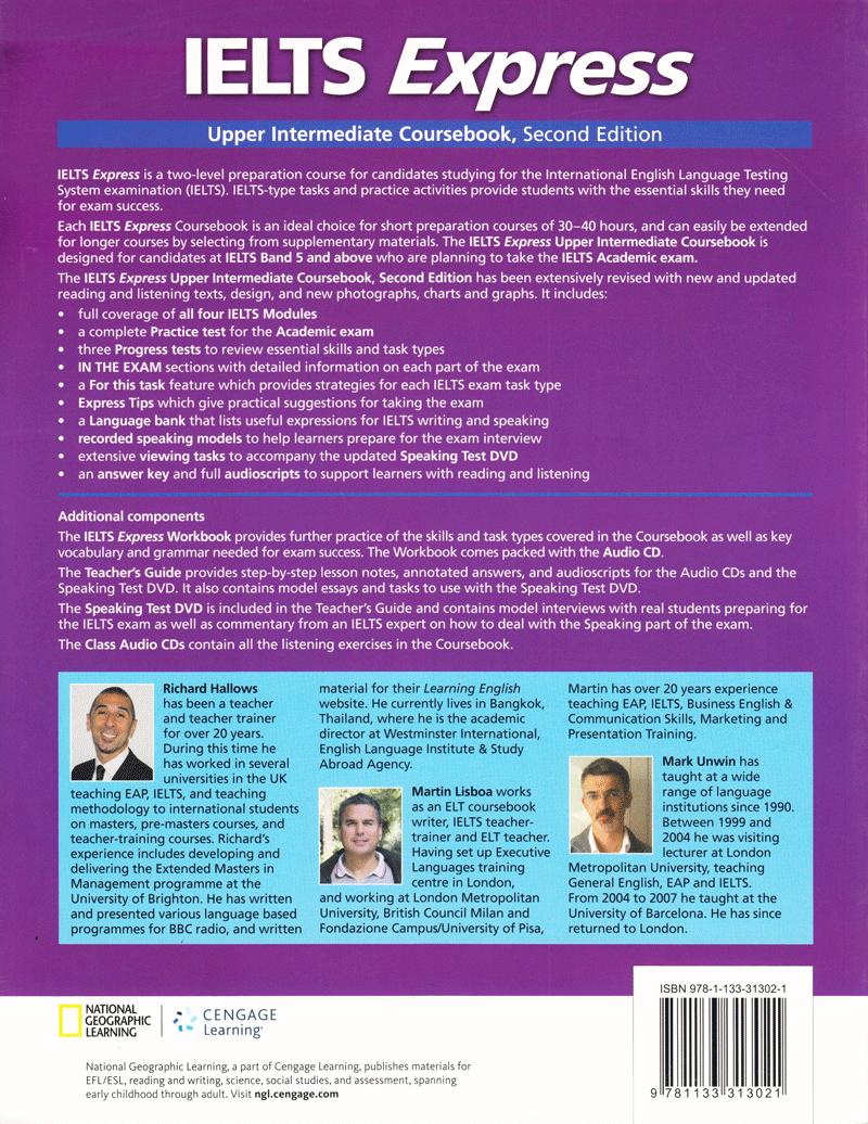 IELTS Express is a two-level preparation course for students at intermediate (4 - 5.5) and Upper Intermediate (5.5 - 7) levels. This popular IELTS preparation course has been completely revised. The Student's Book has been redesigned and almost all of the photographs, graphs and charts have been replaced. All of the reading and listening texts have been updated or are new.