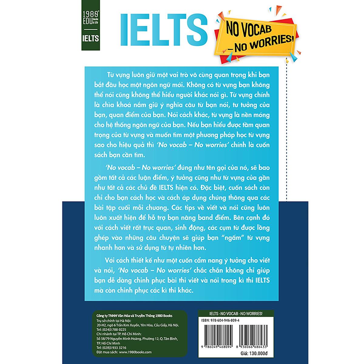 1. No Vocab - No Worries Tên Nhà Cung Cấp 1980 Books Tác giả Vũ Hải NXB NXB Đại học Kinh tế quốc dân Năm XB 2019 Số trang 196 Bạn đang chuẩn bị thi