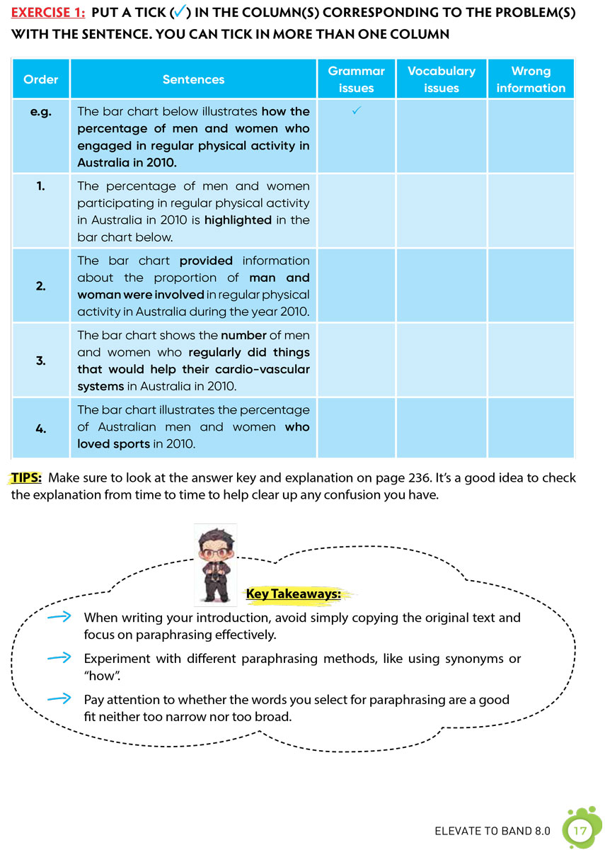 5. Có đáp án chi tiết cho từng bài tập, giúp bạn không chỉ nhận biết mà còn phân tích được những lỗi thường gặp ở những band điểm thấp, tạo điều kiện hiểu rõ nguyên nhân của lỗi và cách khắc phục.
