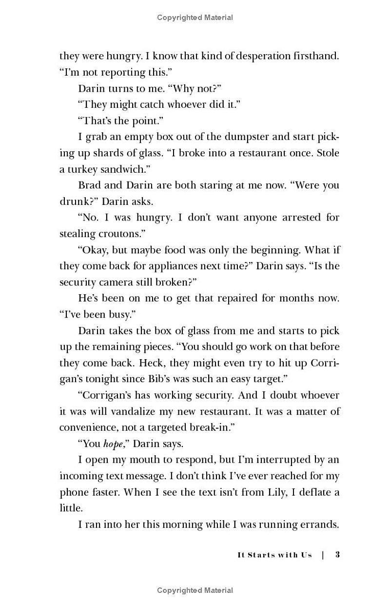 Lily and her ex-husband, Ryle, have just settled into a civil coparenting rhythm when she suddenly bumps into her first love, Atlas, again. After nearly two years separated, she is elated that for once, time is on their side, and she immediately says yes when Atlas asks her on a date.
