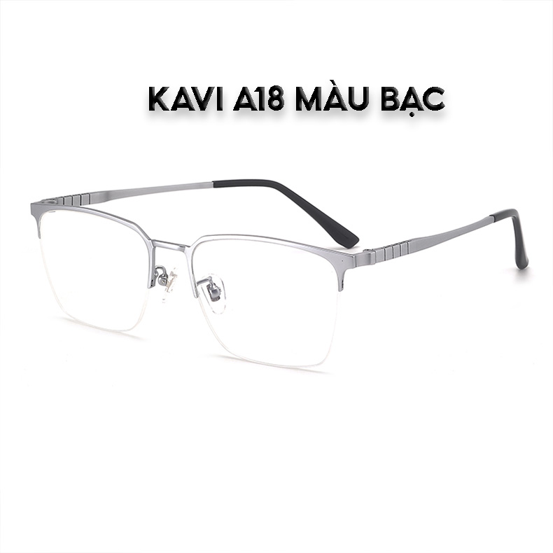 KAVI A18 – Kính nửa viền gọng Titanium nguyên chất, đổi màu nhanh khi ra nắng và chống ánh sáng xanh, bảo vệ mắt toàn diện cả trong nhà và ngoài trời   Đặc Điểm Nổi Bật Kính KAVI KaviA18 • Kính sử dụng cho người thường xuyên tiếp xúc với màn hình máy tính, điện thoại • Mắt kính cao cấp bằng hợp chất của thuỷ tinh, chất liệu High index giúp mắt kính trong hơn, được khuyên dùng trong y tế, không giống như các loại kính mắt nhựa giá rẻ có thể gây hại cho mắt. • Gọng kính chất liệu Titan cao cấp • Mắt kính ngăn chặn hoàn toàn ánh sáng xanh có hại từ màn hình máy tính, điện thoại, cho ánh sáng xanh có lợi đi qua • Mắt kính Hàn Quốc cao cấp trong suốt, không bị ngả vàng, đảm bảo màu sắc chân thực • Mắt kính chống xước, chống tia UV400, chống phản quang không bị in bóng trên mắt kính • Mắt kính siêu trơn chống bám nước và bụi bẩn • Công nghệ mắt kính đổi màu nhanh Fast Transition khi ra nắng • Đeo kính giúp Giảm nhức mỏi mắt khi dùng máy tính, điện thoại. Hạn chế tăng độ cận và nguy cơ mắc các bệnh về mắt. • Bộ sản phẩm bao gồm: Kính, Khăn lụa siêu dày , Hộp đựng kính cao cấp, thẻ bảo hành chính hãng Kavi 1 năm • Màu sắc gọng: Đen, Bạc, Ghi   Vì sao bạn nên chọn kính Kavi ? • Thương hiệu hàng đầu Việt Nam về Kính chống ánh sáng xanh dùng máy tính • Chất lượng đảm bảo, kính được kiểm định bởi Bộ Khoa Học & Công Nghệ • Kính được bảo hành 1 năm và đổi trả miễn phí trong 7 ngày nếu không hài lòng • Mỗi chiếc kính đều được sản xuất tỉ mỉ từ khâu chọn gọng, cắt mắt kính, đóng hộp chau chuốt • Mắt kính mặc định là 0 độ, khách hàng có thể yêu cầu cắt mắt cận giá không đổi ( Gửi chi tiết độ cận viễn vào inbox cho shop sau khi đặt hàng ) • Kiểu dáng thời trang phù hợp cho cả nam và nữ • Giá cả phải chăng vì được sản xuất và bán trực tiếp từ nhà máy • Kavi có nhiều mẫu kính phù hợp mọi khuôn mặt, đội ngũ nhân viên tư vấn online nhiệt tình, chăm sóc khách hàng nhanh 24/7 Hướng dẫn sử dụng & bảo quản • Nên dùng cả hai tay khi đeo và gỡ gọng kính • Hạn chế cầm vào tròng kính mắt để không làm bẩn, xước mắt kính, giúp kính luôn sáng đẹp • Vệ sinh và lau chùi mắt kính bằng nước xịt, khăn lau chuyên dụng ( nếu không có nước lau kính thì dung nước máy thường, không dùng cồn hay các hóa chất khác để rửa mắt kính ) • Tránh nhiệt độ cao và va chạm mạnh • Để gọng kính vào hộp khi không sử dụng   Chính sách bảo hành của Kavi • Bảo hành 1 năm, đổi trả miễn phí trong 7 ngày nếu không hài lòng về chất lượng sản phẩm • Hỗ trợ vệ sinh kính, xiết ốc nếu bị lỏng, nắn chỉnh gọng theo yêu cầu trọn đời sản phẩm   Kavi nhận CẮT MẮT KÍNH CẬN VIỄN LOẠN theo yêu cầu giá không đổi • Quý khách đặt mắt kính cận vui lòng inbox cho Kavi các thông tin “Số độ 2 mắt” và “Khoảng cách đồng tử (PD)”