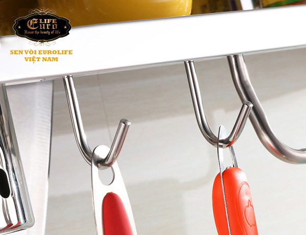 Giới thiệu sản phẩm Kệ bếp đa năng Inox SUS 304 Eurolife EL-K4   Kệ bếp đa năng Inox SUS 304 Eurolife EL-K4 Thương hiệu : Eurolife - Việt Nam Chất liệu : được sản xuất từ INOX SUS 304, bền bỉ, không rỉ sét Bảo hành : 2 năm Với kệ bếp đa năng Eurolife bạn không những tiết kiệm tối đa không gian bếp mà còn tạo ra sự gọn gàng, sang trọng bậc nhất.Thông tin chi tiết về sản phẩm :Chiều dài của kệ : 58 cm , chiều ngang 12.5cm và chiều cao là 11cm.Trọng lượng : 1200grs Ưu điểm vượt trội : Kệ bếp đa năng Inox Eurolife EL-K5 được làm từ Inox SUS 304 cao cấp, sáng bóng,dễ lau chùi vệ sinh. Kệ được thiết kế với 2 ống đựng đũa, muống nĩa tiện dụng sạch sẽ, kếthợp giá để hộp gia vị, nước tương nước mắm … Kệ được tích hợp bộ cài dao ngay sau lưng, cực kỳ tiện dụng và an toàn khi sử dụng. Thanh treo khăn rất tiện dụng. Kệ được thiết kế với các móc treo, có thể treo thớt, muỗng, vá, cùng đồ dùng nhà bếp vô cùng tiện lợi. Ống đựng đũa muỗng với các lỗ thoát nước, thông hơi, giúp đồ dùng khô ráo nhanh chóng ! Sản phẩm cứng cáp và chắc chắn trong từng đường thiết kế ! Kệ bếp Inox Eurolife được test và chứng nhận bởi Trung Tâm Kỹ Thuật Tiêu chuẩn Đo Lường Chất lượng 3 ( Quatest 3 )- Chịu tải trọng : 10kg trên bề mặt sản phẩm- Sản phẩm không ăn mòn , không hỏng khi phun muối- Vật liệu sạch, không chì , an toàn khi sử dụng Sản phẩm giúp cho căn bếp của bạn trở lên gọn gàng, ngăn lắp, sạch sẽ và tiện dụng.  Với kiểu dáng thiết kế tiện dụng bắt mắt, tháo lắp đơn giản giúp bạn thao tác dễ dàng đồng thời giá treo đồ nhà bếp đa năng giúp không gian bếp của bạn trở nên khoa học và gọn gàng hơn. Bộ sản phẩm tuyệt vời không thể thiếu trong căn bếp nhà bạn. Hãy nhanh tay để sở hữu một bộ sản phẩm của Eurolife ngay hôm nay ! Sản phẩm mang đến sự đẳng cấp, sang trọng và tinh tế bậc nhất cho phòng tắm nhà bạn, với chất lượng và thời gian sử dụng lâu dài, ưu việt ! Hãy trải nghiệm cùng sản phẩm thương hiệu Eurolife để cảm nhận giá trị chúng tôi mang lại cho khách hàng. Chất lượng, uy tín và dịch vụ hậu mãi tốt luôn là cam kết của chúng tôi. Eurolife nhà sản xuất chuyên nghiệp, thương hiệu hàng đầu cho lĩnh vực sen vòi thiết bị, phụ kiện phòng tắm, nhà bếp tại Việt Nam.