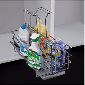 Giá đa năng để giao thớt, chai lọ, gia vị Chất liệu: Inox 304 dạng nan tròn Phiên bản bắt cánh ngăn kéo và mở cánh Ray âm giảm chấn Angas Độ rộng cánh: 300mm