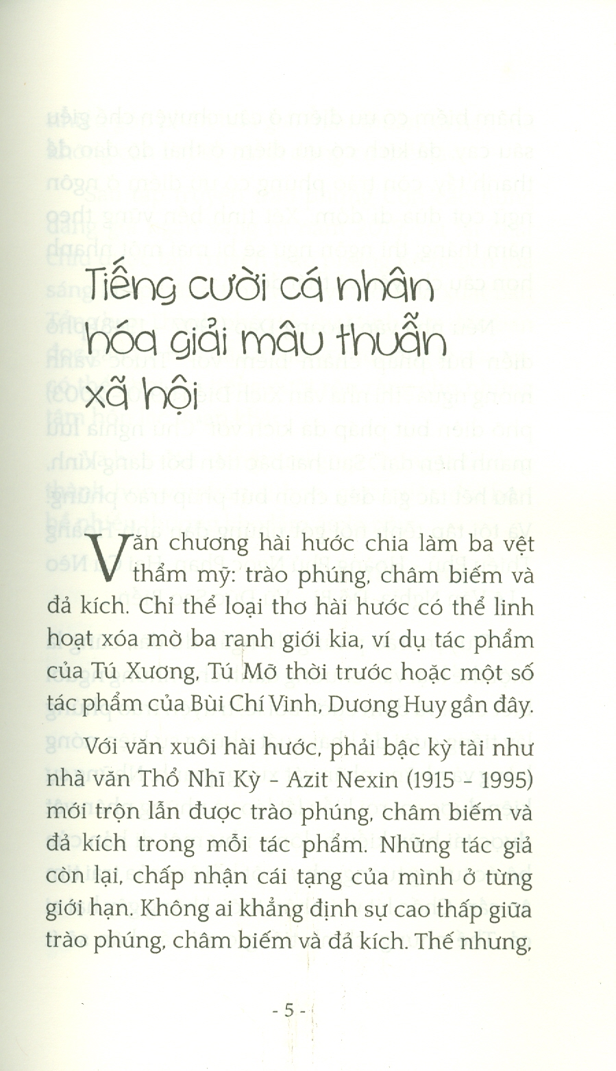 Truyện trào phúng dù ngăn dù dài, cũng là một thể loại văn chương dành cho những người biết cười và dám cười. Bởi lẽ, truyện trào phúng lấy tiếng cười để khái quát những