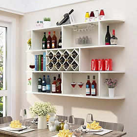 Kệ rượu treo tường trang trí bằng gỗ là một giải pháp tuyệt vời để tạo điểm nhấn cho không gian nội thất của bạn, những chai rượu yêu thích được trưng bày một cách