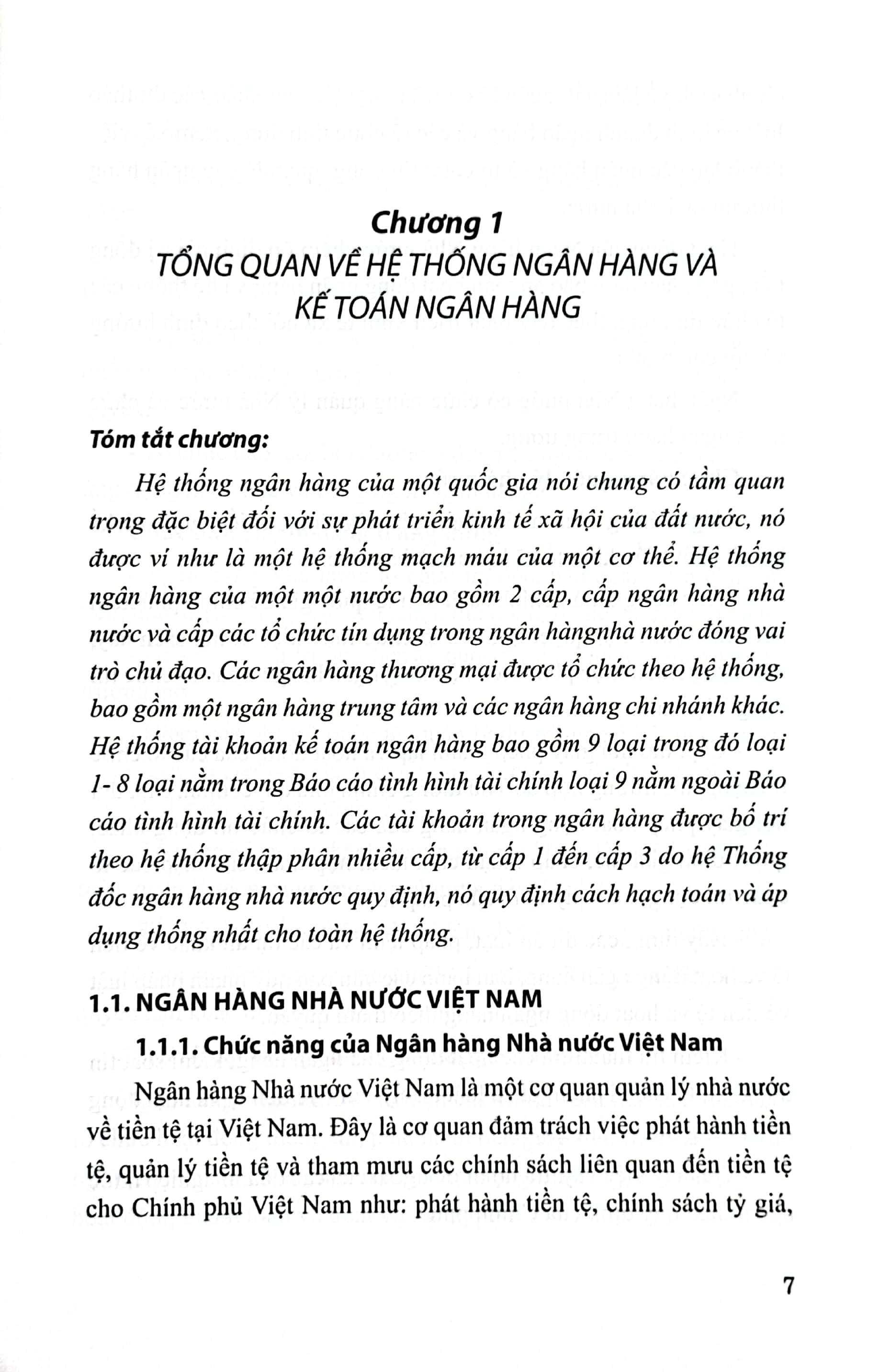Hệ thống ngân hàng của một quốc gia nói chung có tầm quan trọng đặc biệt đối với sự phát triển kinh tế xã hội của đất nước, nó được ví như là một hệ thống mạch máu của một cơ thể. Hệ thống ngân hàng của một một nước bao gồm 2 cấp, cấp ngân hàng nhà nước và cấp các tổ chức tín dụng trong ngân hàng nhà nước đóng vai trò chủ đạo. Các ngân hàng thương mại được tổ chức theo hệ thống, bao gồm một ngân hàng trung tâm và các ngân hàng chi nhánh khác. Hệ thống tài khoản kế toán ngân hàng bao gồm 9 loại trong đó loại 1- 8 loại nằm trong Báo cáo tình hình tài chính loại 9 nằm ngoài Bảo cáo tình hình tài chính. Các tài khoản trong ngân hàng được bố trí theo hệ thống thập phân nhiều cấp, từ cấp 1 đến cấp 3 do hệ Thống đốc ngân hàng nhà nước quy định, nó quy định cách hạch toán và áp dụng thống nhất cho toàn hệ thố