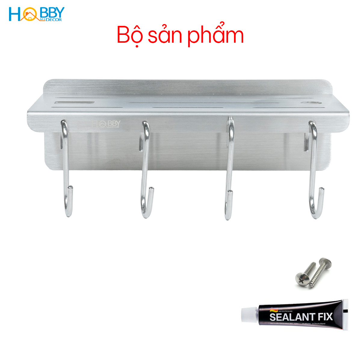 Kệ treo dao kéo Inox 304 có 4 móc treo dán tường Hobby home decor KDT Thông tin kỹ thuật - Chất liệu: Inox 304 xước không rỉ sét - Kích thước tiêu chuẩn: 22x9x6.5cm
