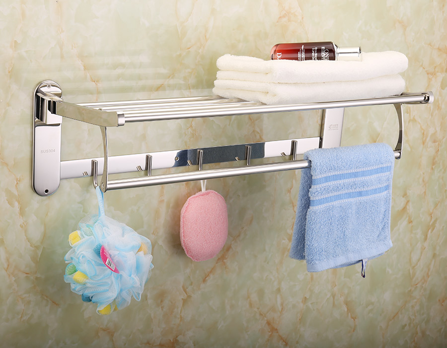 Kệ được thiết kế đang năng linh động với 1 máng để khăn, 1 máng treo phơi khăn tắm và 5 móc treo đồ, thuận tiên khi sử dụng