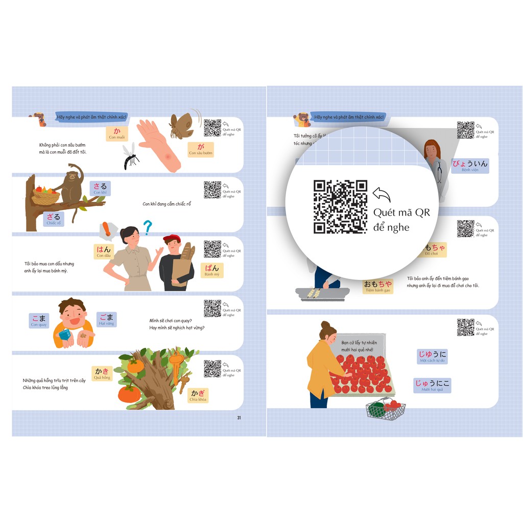 Khác với tiếng Việt hay tiếng Anh là ngôn ngữ sử dụng chữ cái Latinh, tiếng Nhật là ngôn ngữ sử dụng chữ tượng hình phức tạp và khó hơn rất nhiều. Bởi vậy, rào cản đầu tiên mà nhiều người gặp phải khi bắt đầu học tiếng Nhật chính là các ký tự tiếng Nhật. Chính vì thế, nhằm giúp người học có thể khởi đầu học tiếng Nhật dễ dàng hơn, Keep it up – Tiếng Nhật cấp tốc cho người mới bắt đầu được biên soạn tập trung vào ý tưởng giúp ghi nhớ ký tự tiếng Nhật một cách vô cùng độc đáo và thú vị. 4 Ý TƯỞNG ĐẶC BIỆT CỦA CUỐN SÁCH Keep it up – Tiếng Nhật cấp tốc cho người mới bắt đầu - Sử dụng phương pháp liên tưởng các chữ cái Hiragana với những hình ảnh sinh động giúp người học học thuộc dễ dàng trong thời gian ngắn - Nhiều tranh minh họa phù hợp nhất với từng chữ viết để người học có thể phân biệt và ghi nhớ được các chữ cái Hiragana và Katakana - Nội dung bài học (từ vựng, câu, ngữ pháp) được xây dựng phù hợp với năng lực theo cấp độ khó tăng dần và lượng kiến thức đáp ứng được việc người học có thể học liên tục - Bài thi JPLT N5 dưới dạng ôn tập được biên soạn, tổng hợp rất sát với thực tế, giúp người học tự định hướng mục tiêu và phương pháp học tập sau này ƯU ĐIỂM NỔI BẬT CỦA CUỐN SÁCH Keep it up – Tiếng Nhật cấp tốc cho người mới bắt đầu 1. Cấu trúc bài học chặt chẽ, ngắn gọn 12 Unit – 12 Bài học được biên soạn khoa học, đầy đủ như giáo trình giảng dạy giúp người học có thể tự học tại nhà hiệu quả. 2. Biên soạn, giải thích chi tiết về chữ viết và cách phát âm tiếng Nhật: Bảng chữ cái Hiragana và Katakana Khi bắt đầu học tiếng Nhật, việc quan trọng nhất là ghi nhớ hai bảng chữ cái Hiragana và Katakana. Cuốn sách giải thích chi tiết hai bảng chữ cái Hiragana và Katakana theo từng dòng để người học có thể dễ dàng viết theo, ghi nhớ và viết được chính xác chữ cái đó. Cuốn sách giải thích rất dễ hiểu các âm trong tiếng Nhật như âm đục, âm bán đục, âm ngắt, trường âm, âm mũi và biến âm cùng hình minh họa sinh động, tạo hứng thú học tập. 3. Công cụ hỗ trợ học tập tối đa Khởi đầu học tiếng Nhật với Keep it up sẽ trở nên càng dễ dàng và hiệu quả hơn, bởi vì đi kèm bộ sách là rất nhiều các công cụ hỗ trợ học tập tối đa. - Quét mã QR truy cập file nghe chuẩn, luyện kỹ năng nghe và phát âm theo thật chính xác - Quét mã QR học bảng chữ cái Hiragana bằng hình động emoji dễ thương, trực quan dễ hình dung - 50 bức ảnh minh họa bảng chữ cái Hiragana, bao gồm các hình ảnh minh họa phù hợp nhất với các chữ cái để người học liên tưởng đến các hình ảnh và học thuộc dễ dàng - Góc thư giãn vừa chơi vừa ôn luyện kiến thức tiếng Nhật Với những ưu điểm trên, Keep it up – Tiếng Nhật cấp tốc cho người mới bắt đầu chắc chắn sẽ là một khởi đầu tuyệt vời và dẫn dắt các bạn đến đích cuối cùng trên con đường chinh phục tiếng Nhật!