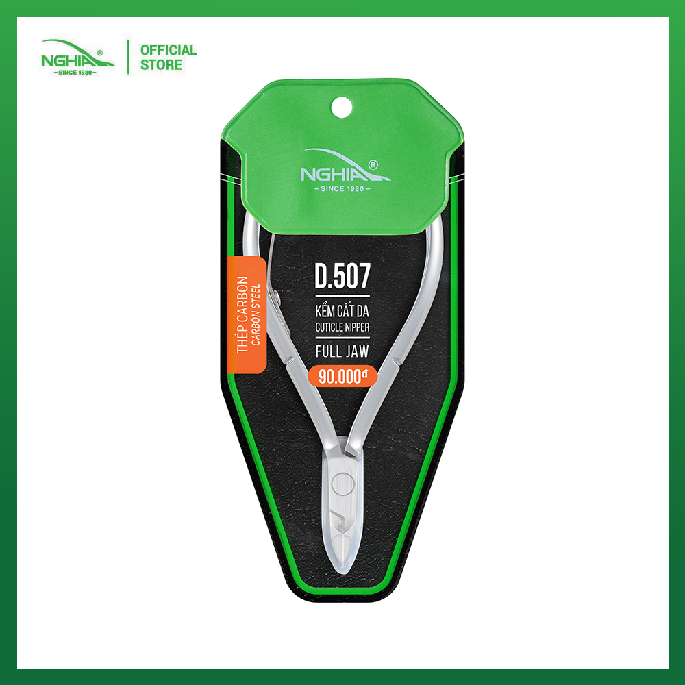 Chất liệu Thép chuyên dụng cao cấp, an toàn cho người dùng. Màu sắc Xám. Kiểu chống 1 chống. Kiểu mang 2 mang : 1 mang vuông, 1 mang bán nguyệt Kích thước Full Jaw. Trọng lượng 52 gr. Thiết kế kiểu dáng phù hợp với bàn tay người Châu Á. Lưỡi kềm sắc mỏng, tinh xảo, độ chính xác cao nên được cắt chính xác gọn gàng không làm tổn thương da khi cắt. Lưỡi kềm bén ngọt, độ bền lâu dài, không cần mài lại khi mua. Sản phẩm được sản xuất theo chuẩn ISO 9001 - 2015. Thương hiệu Kềm Nghĩa Được người tiêu dùng và thợ chuyên nghiệp ưu tiên lựa chọn hơn 20 năm, đạt được nhiều giải thưởng như: Hàng Việt Nam chất lượng cao, Thương hiệu quốc gia. Loại bao bì Bao Simili. Mô tả: Sản phẩm Kềm cắt da D.507 của Kềm Nghĩa được xem là một trong những sự lựa chọn hàng đầu của khách hàng chuyên nghiệp. Với thiết kế mang bán nguyệt độc đáo,đây là một trong những sản phẩm bán chạy nhất của Kềm Nghĩa hiện nay. Sản phẩm D.507 được chế tác từ chất liệu cao cấp, an toàn cho người sử dụng. Đầu kềm thon, mũi và lưỡi kềm dài được thiết kế phù hợp để dễ đi vào phần da và làm sạch phía trong móng. Chống kềm và rãnh giúp tự động bung cán kềm ra khi cắt mà không cần các ngón tay đẩy giúp người dùng dễ dàng tự cắt da tại nhà. Lưu ý sử dụng: Sản phẩm chỉ dùng để cắt da tay, da chân, không dùng để cắt các vật cứng. Cách bảo quản sản phẩm :