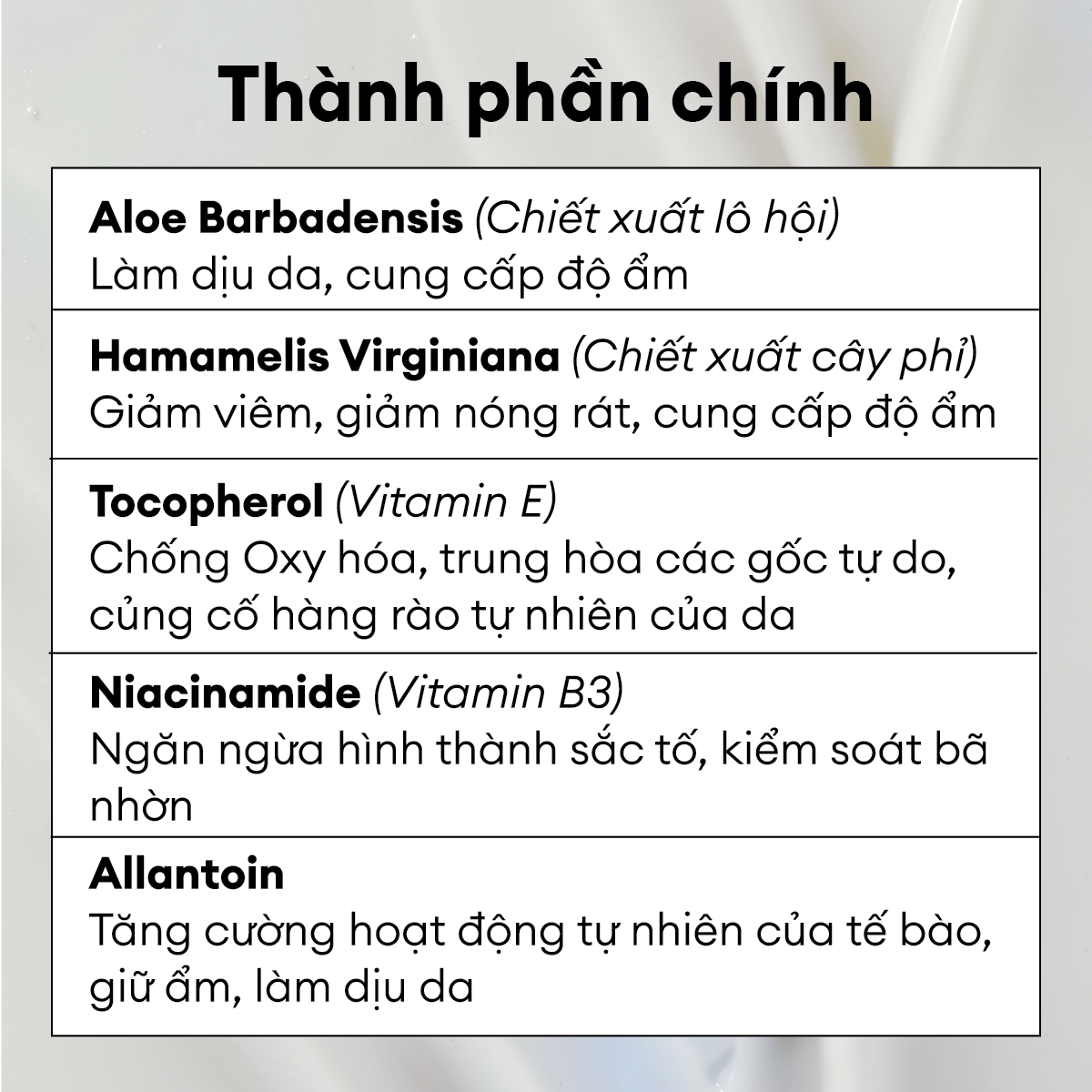 Công dụng: Kem dưỡng với Chiết xuất Hắc Sâm (Black Ginseng Extract) và Niacinamide giúp dưỡng sáng da, duy trì độ ẩm, bảo vệ da… Kết cấu mỏng nhẹ, thẩm thấu nhanh. Phù hợp với