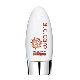 AC CARE BEE’S SUN PROTECTION - Kem Chống Nắng SPF50+ PA+++ Công dụng: Melittin bảo vệ lỗ chân lông không bị viêm do vi rút thải ra từ máu và bã nhờn gây viêm tắc