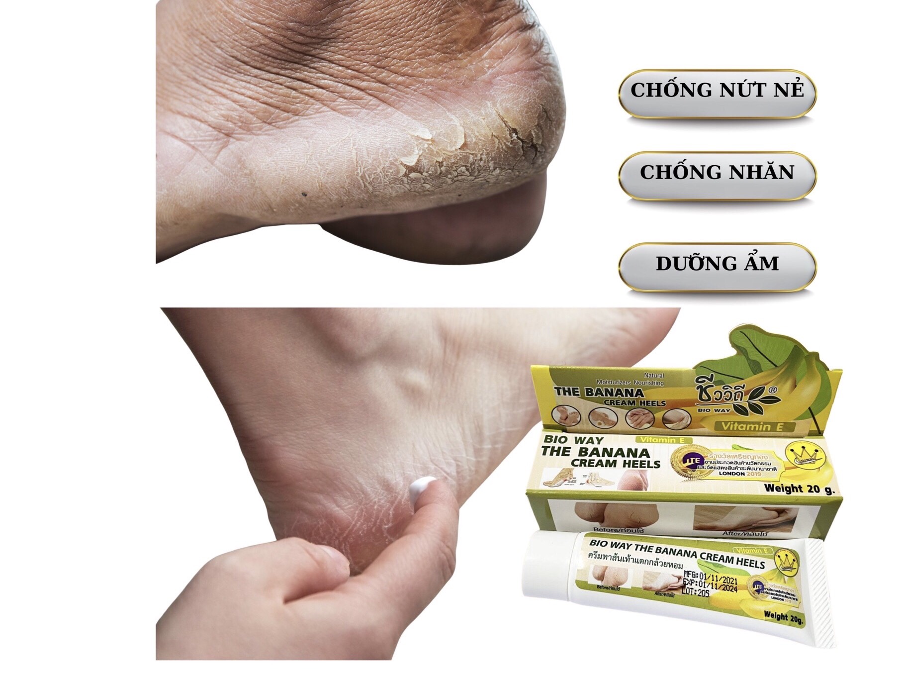 và gót chân BIO WAY THE BANANA CREAM HELLS 20g- Thailand Thành phần: Water,carbomer,mineral oil Cetyl alcohol,ceteareth-20,stearyl alcohol Triethanolamine,petrolatum,tocopheryl acetate Musa paradisiaca fruit extract,petrolatum, Methyl paraben Sản