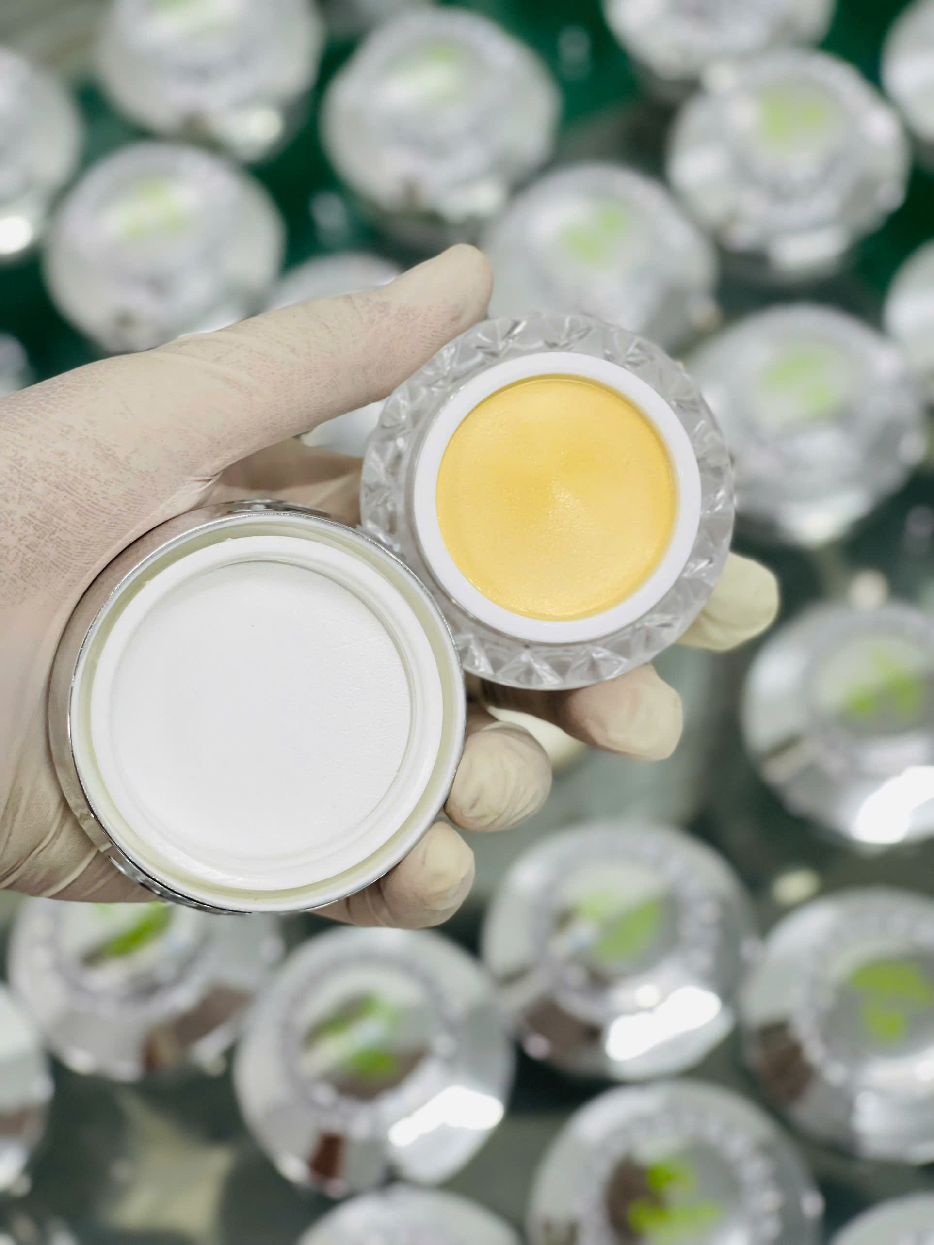 Công dụng: Kem dưỡng với chiết xuất Nấm Linh Chi Vàng (BeautiFerm Healerine), Tego Pep 4 Comfort (Tetrapeptide), SK-Influx V MB (Lipid cô đặc) giúp cấp ẩm, dưỡng trắng da, bảo vệ và chăm sóc