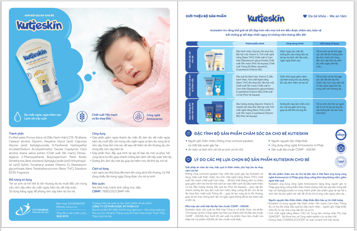 Kem mẩn ngứa hăm Kutieskin chứa các thành phần thiên nhiên nhập khẩu châu Âu: