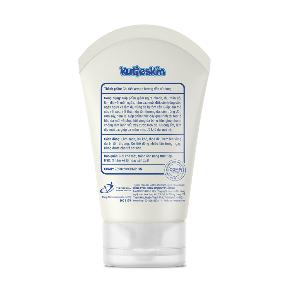 Thành phầnKem mẩn ngứa hăm Kutieskin chứa các thành phần thiên nhiên nhập khẩu châu Âu: Dầu quả bơ, phức hệ aquaxyl, Vitamin E, Bơ shea: Giúp dưỡng ẩm, làm mềm dịu mát da. Chiết xuất Cam thảo, ch...