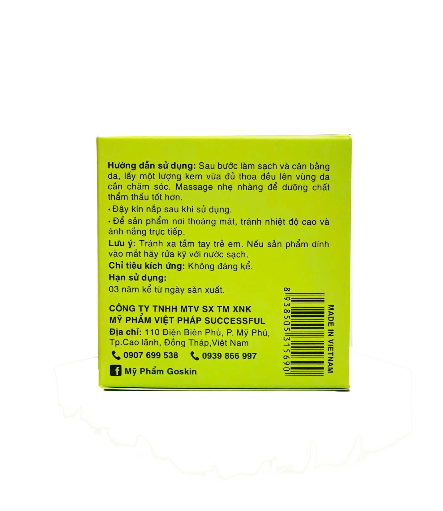Công dụng: Kem dưỡng với chiết xuất Nấm Linh Chi Vàng (BeautiFerm Healerine), Tego Pep 4 Comfort (Tetrapeptide), SK-Influx V MB (Lipid cô đặc) giúp cấp ẩm, dưỡng trắng da, bảo vệ và chăm sóc
