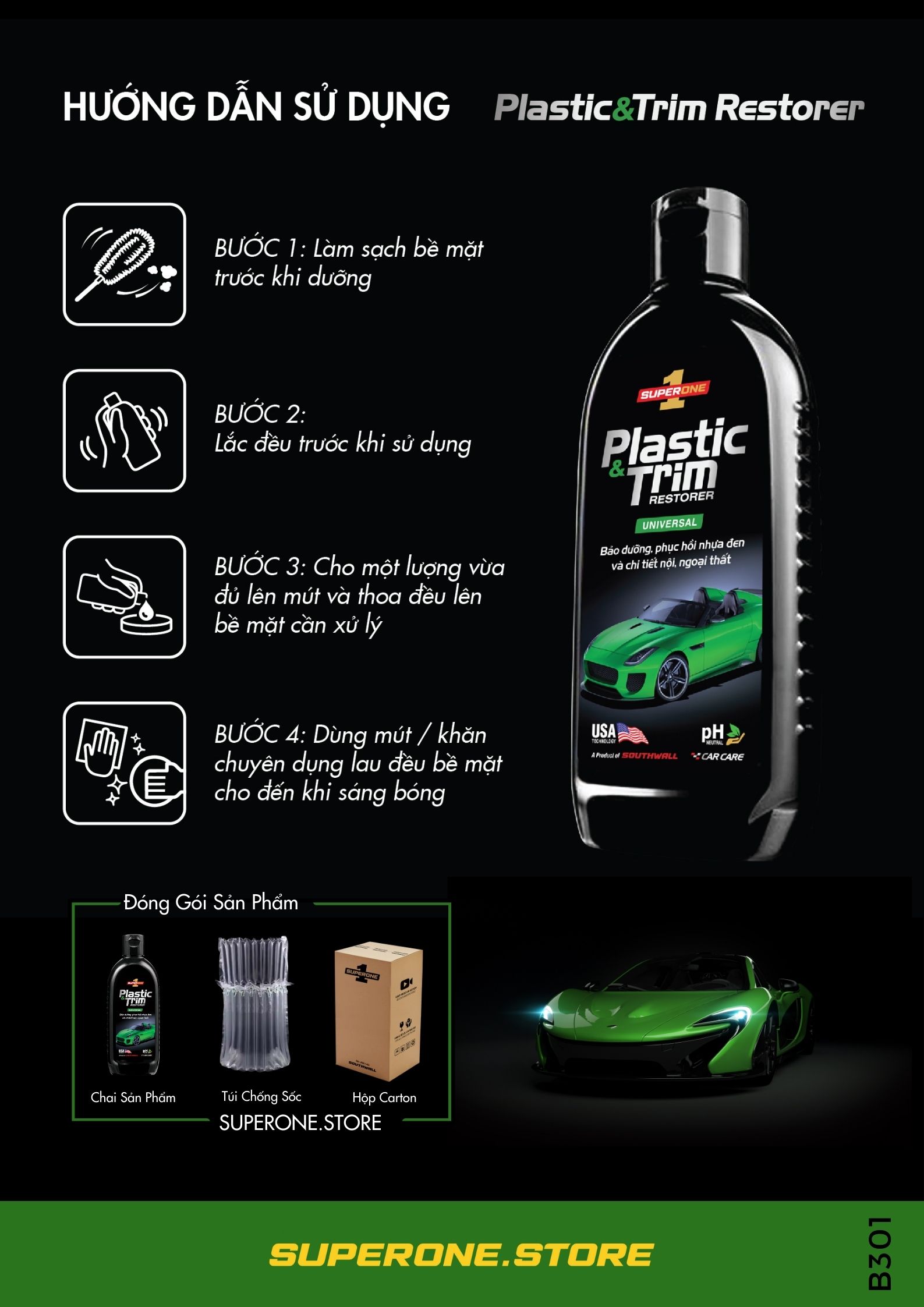 ✨Kem Phục Hồi Nhựa & Ốp Viền Ô Tô SUPERONE Plastic & Trim Restorer - Universal SOUTHWALL B301