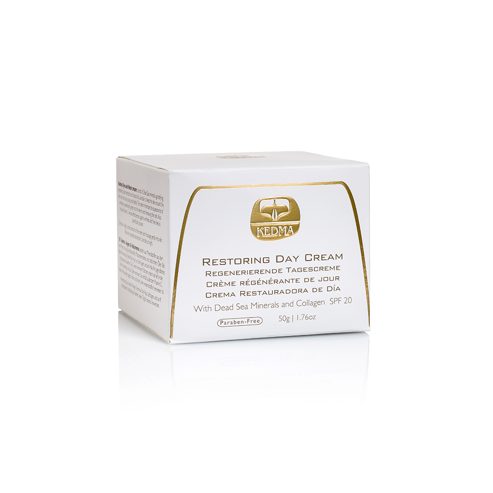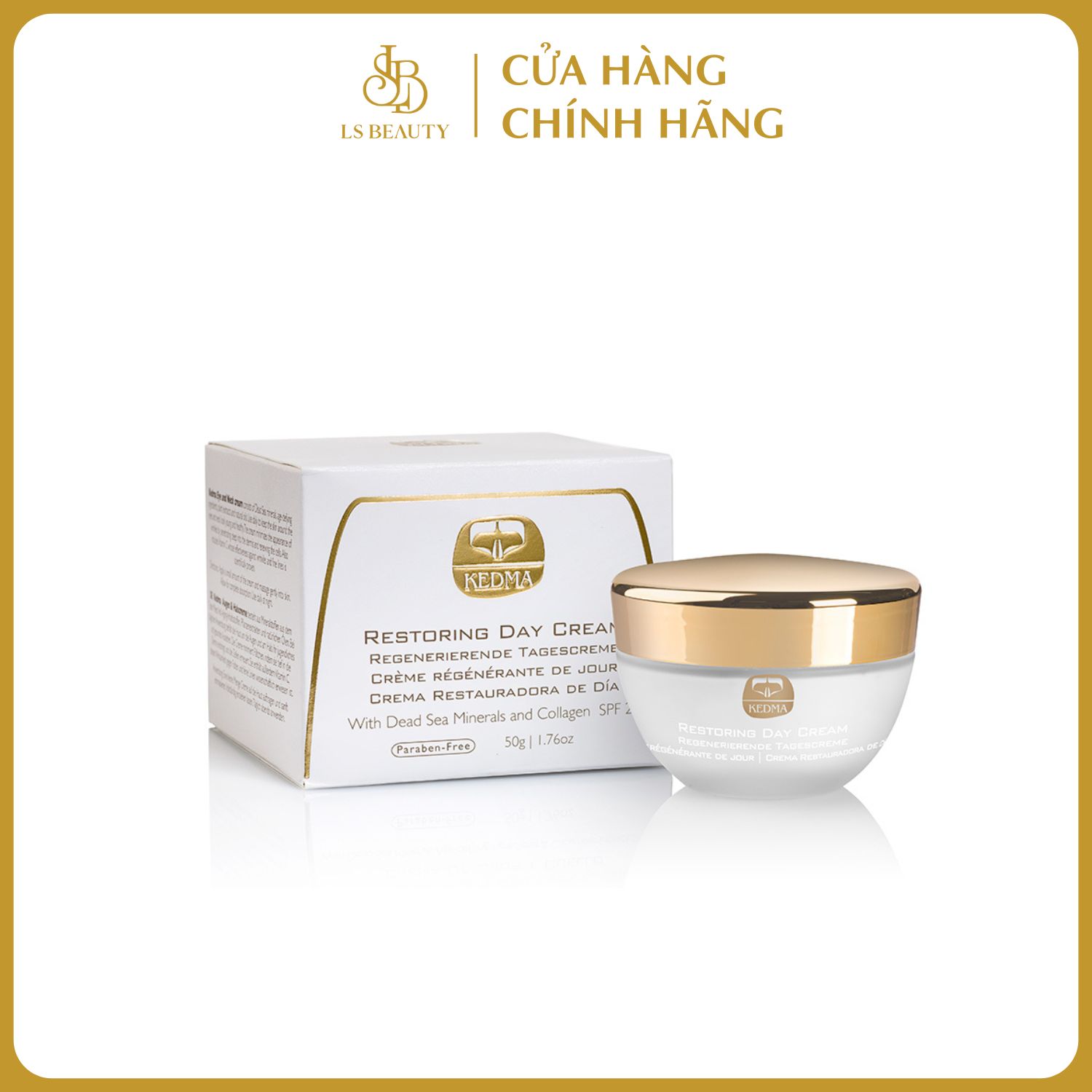 Ứng dụng: Dựa trên Collagen và các Khoàng chất từ Biển Chết, Kem phục hồi Kedma Restoring Day Cream giúp làm chậm quá trình lão hóa da, làm săn chắc da và giúp duy trì độ đàn hồi của da. Kem thẩm thấu sâu vào dưới lớp biểu bì và cung cấp collagen mới để giảm nếp nhăn và giảm sắc tố. Hỗn hợp vitamin E và A bảo vệ da khỏi các gốc tự do có hại (độc tố).