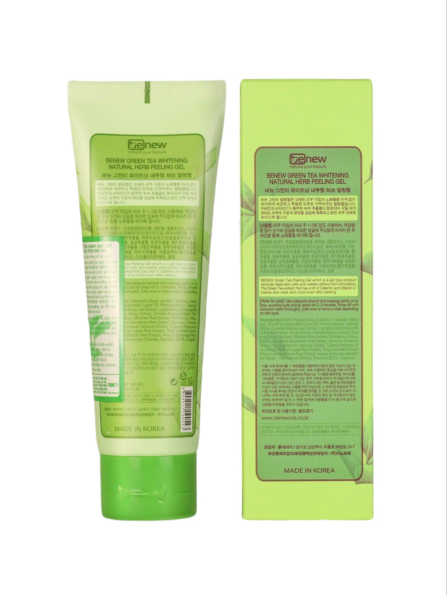 - Tẩy Tế Bào Chết Trà Xanh Hàn Quốc Benew Green Tea Peeling Gel (120ml) chứa tinh chất trà xanh thiên nhiên kết hợp với các loại thảo dược giúp giảm thiểu tế bào da