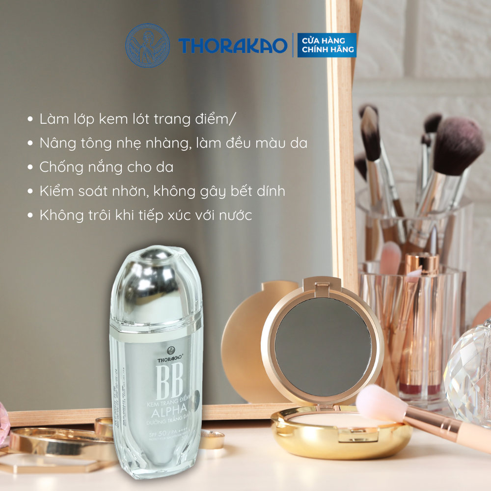 Kem trang điểm BB Alpha dưỡng trắng da Thorakao 30g là giải pháp chăm sóc làn da hữu hiệu. Sản phẩm với nhiều dưỡng chất có công dụng giúp da trắng sáng mịn màng, bảo