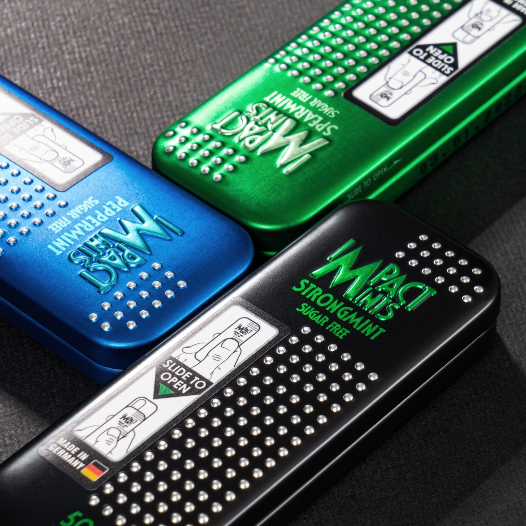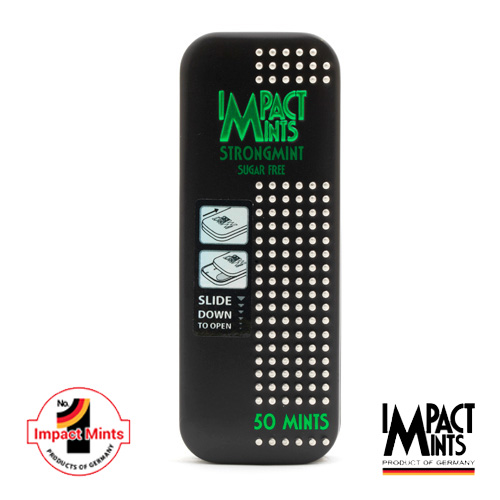 Kẹo ngậm không đường hương bạc hà Impact Mints 9g có 3 loại: + Kẹo ngâm bạc hà không đường StrongMint 9g (Bạc hà thơm nồng) + Kẹo ngâm bạc hà không đường PepperMint 9g