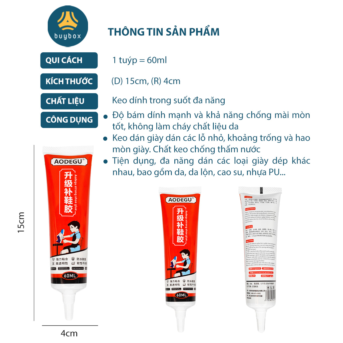 Keo Dán Giày Dép Chuyên Dụng 60ml – Keo Dán Giày Siêu Dính, Dính Chắc, Kèm Phụ Kiện 1. Đặc Điểm Nổi Bật: - Dễ dàng sử dụng: Các bước sử dụng đơn giản ngay