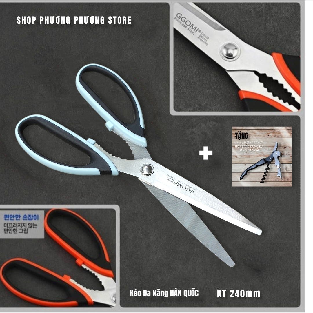 ✨Kéo Hàn Quốc Nhà Bếp Kéo Cắt Gà Cắt Đồ Đa Năng Cao Cấp ( Tặng Khui Hộp 3 in 1 )