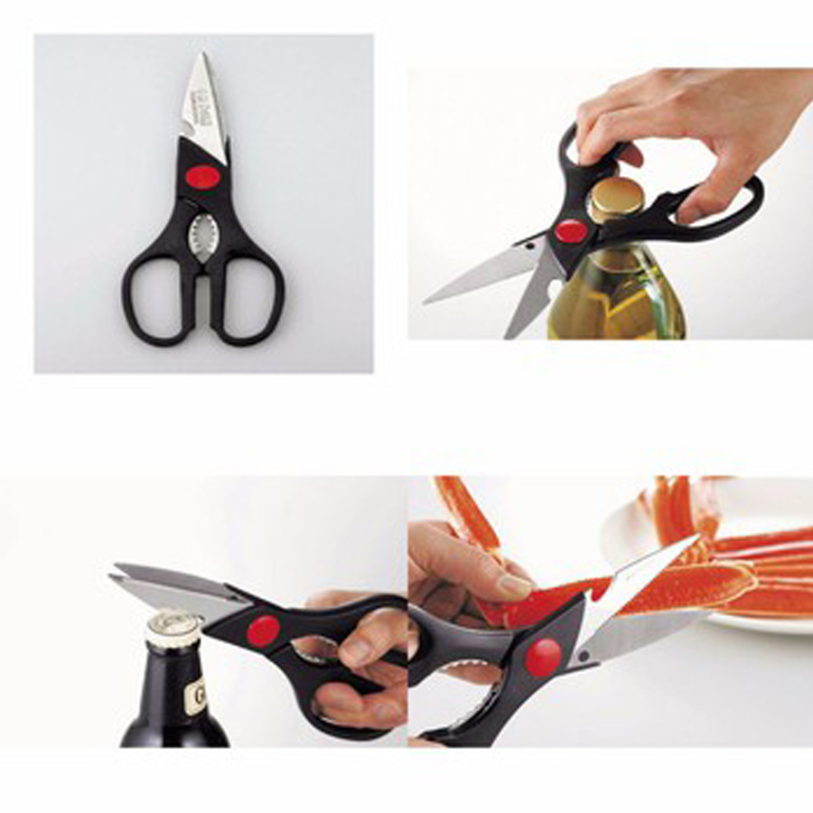 • Với 3 chức năng: dùng để cắt nhiều loại thức ăn như rau, thịt, cá, gà các loại bao bì, túi gói nguyên liệu, sử dụng như dụng cụ khui nắp chai, phần cán kéo dùng để kẹp càng cua ghẹ & các loại hạt, mở nắp chai