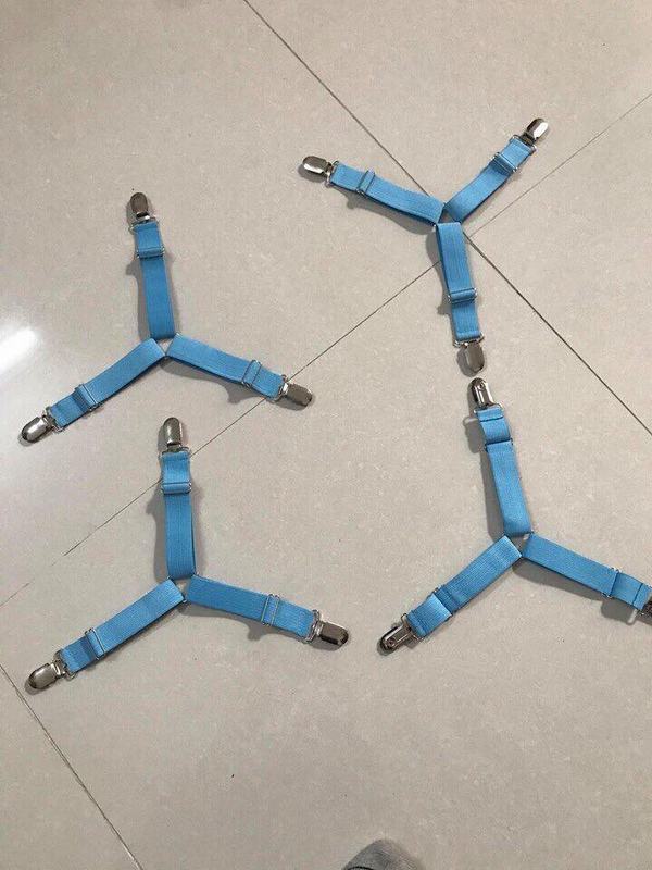 - Cách sử dụng: Mở phần kẹp kim loại, kẹp 3 đầu kẹp vào phần ga trải giường ở 1 góc; thực hiện tương tự với 3 góc ga còn lại.