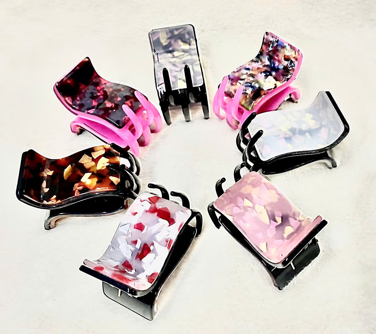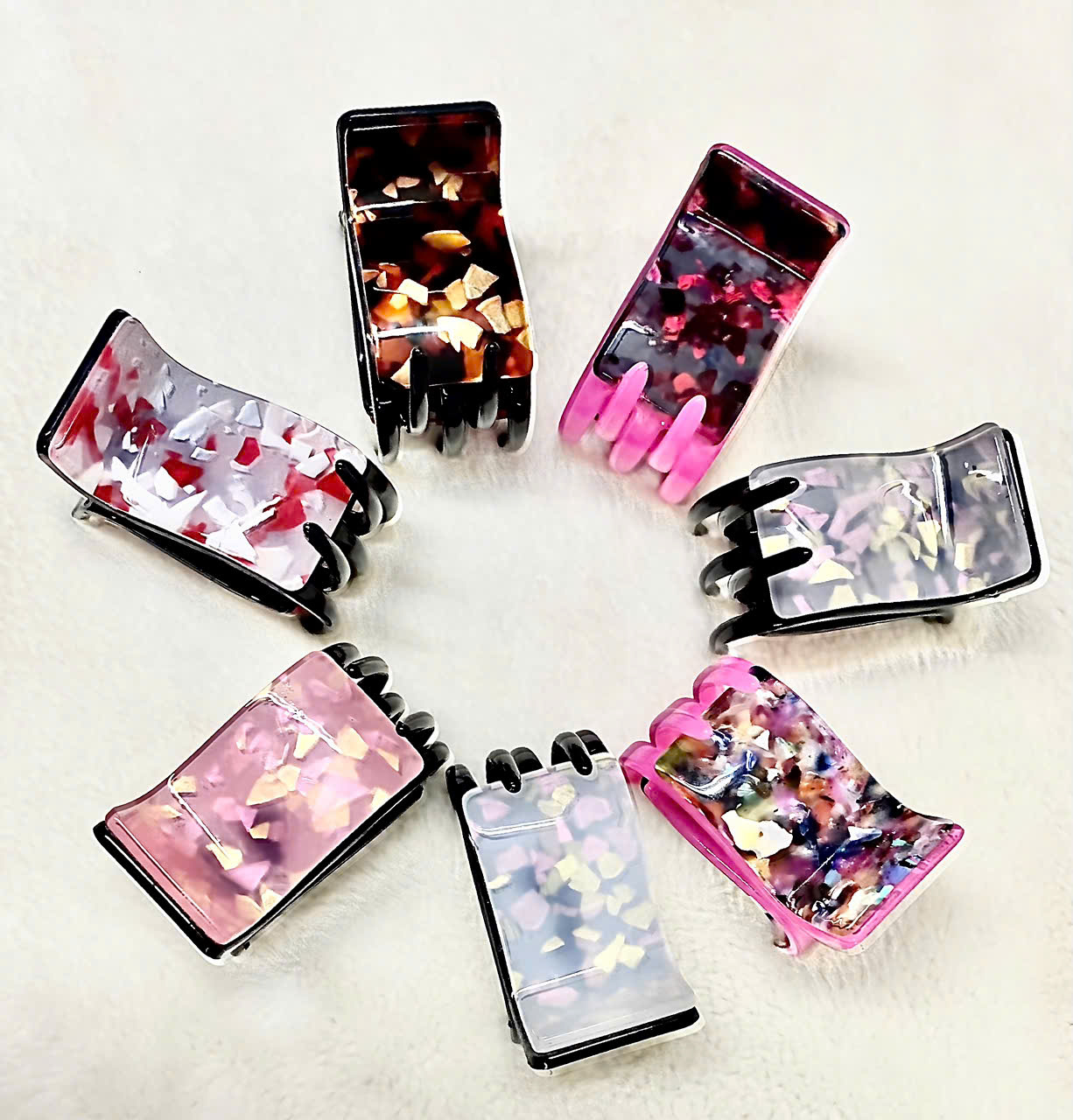Kẹp tóc càng cua 2 lớp xịn họa tiết sang trọng phong cách Hàn Quốc Chất liệu: Nhựa loại I, mica họa tiết sang trọng, lò xo thép Màu sắc: Có nhiều màu lựa chọn
