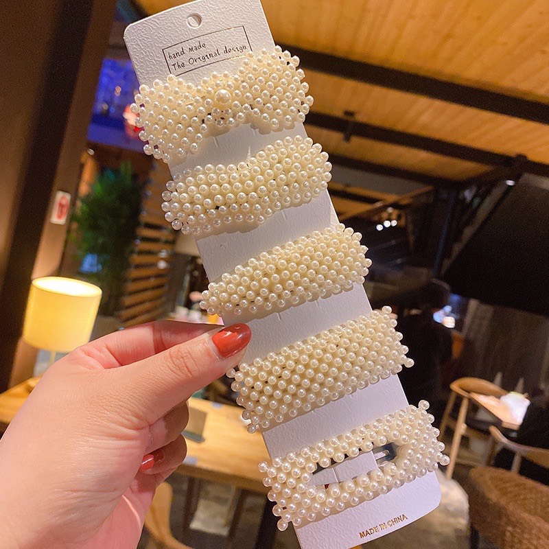 Bộ 5 món kẹp tóc đính ngọc trai, cột tóc Hàn Quốc phong cách trẻ trung xinh xắn KT28 Kẹp càng cua, dây buộc tóc đính ngọc trai là món phụ kiện tóc rất được