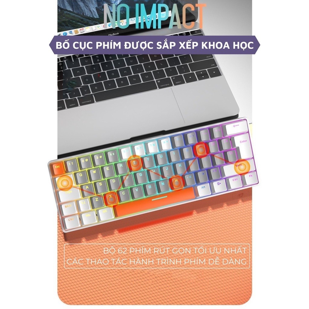 Keyboard Bàn Phím Cơ T-WOLF T60 Chính Hãng (Phím cơ, 63 key, Blue Switch, 20 chế độ LED, Kết nối cổng Type-C)