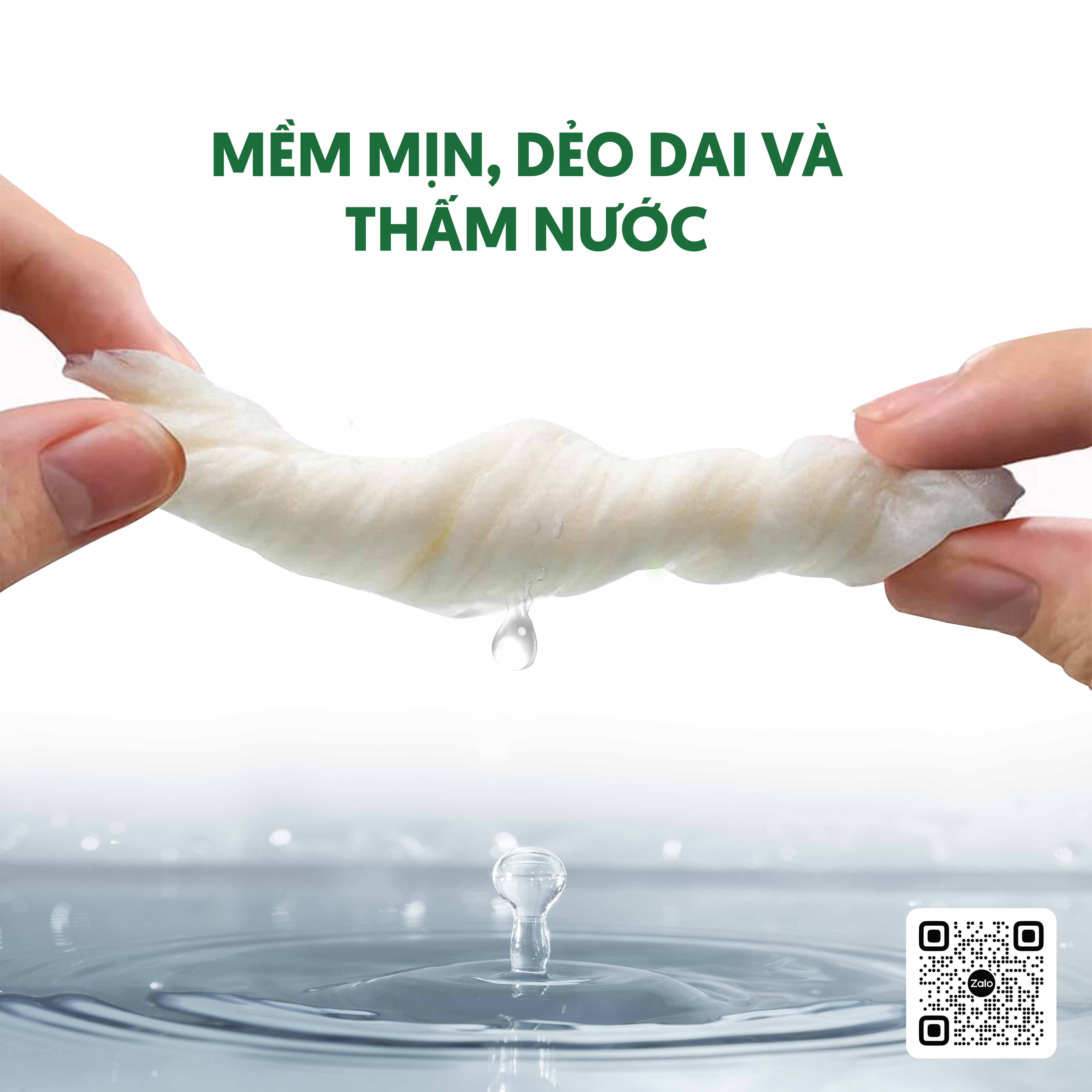 Mô tả sản phẩm Khăn giấy với thành phần 100% bột giấy nguyên sinh, không có các chất phụ gia, không chất tẩy trắng, không gây kích ứng da, an toàn cho người sử dụng.