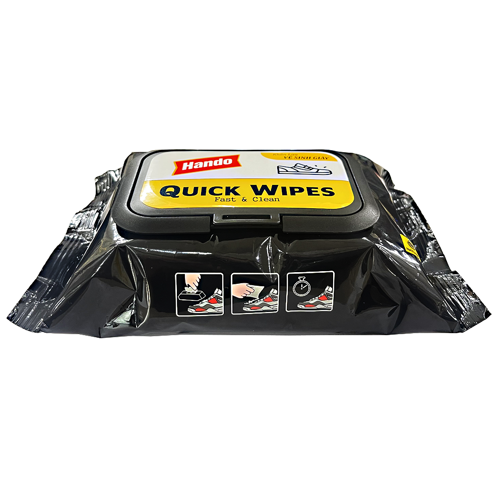 Mô tả sản phẩm Tác dụng, tính năng Khăn lau vệ sinh giày Hando + Làm sạch các vết bẩn, vết ố nhanh chóng, giúp đôi giày của bạn sáng bóng, trắng sạch như mới