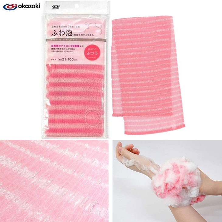 Khăn tắm tạo bọt mịn Okazaki 10×100㎝ THÔNG TIN SẢN PHẨM Xuất xứ: Nhật Bản - Màu sắc: Màu hồng | Màu xanh(Giao ngẫu nhiên) - Kích thước: 10×100㎝ - Chất liệu:100% Polyester cao cấp