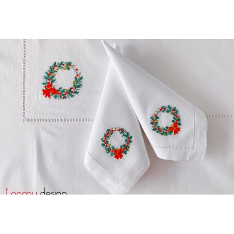 ✨Khăn trải bàn thêu vòng holy 200x150 cm kèm 8 khăn ăn.