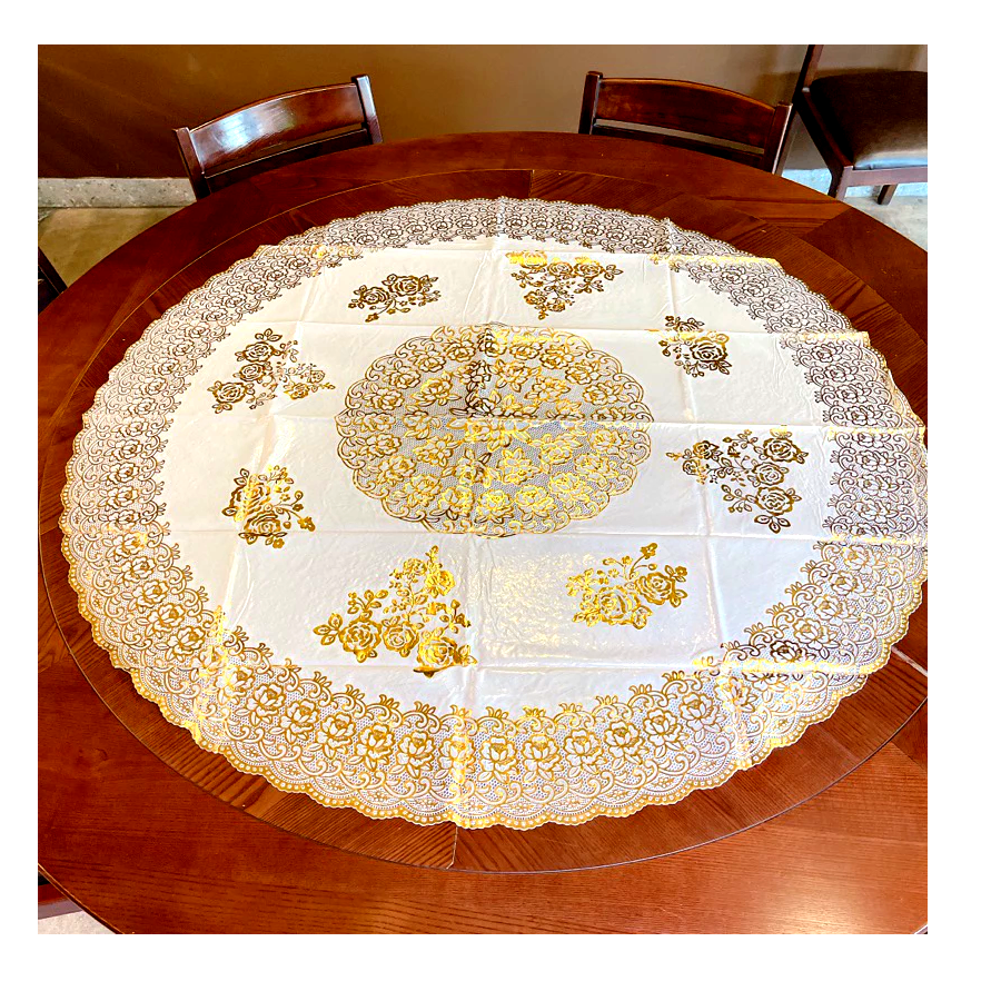 ✨Khăn Trải Bàn WLG.751 tròn, đường kính 180 cm, hoa văn phủ nhũ vàng, nhựa PVC dẻo, không thấm nước
