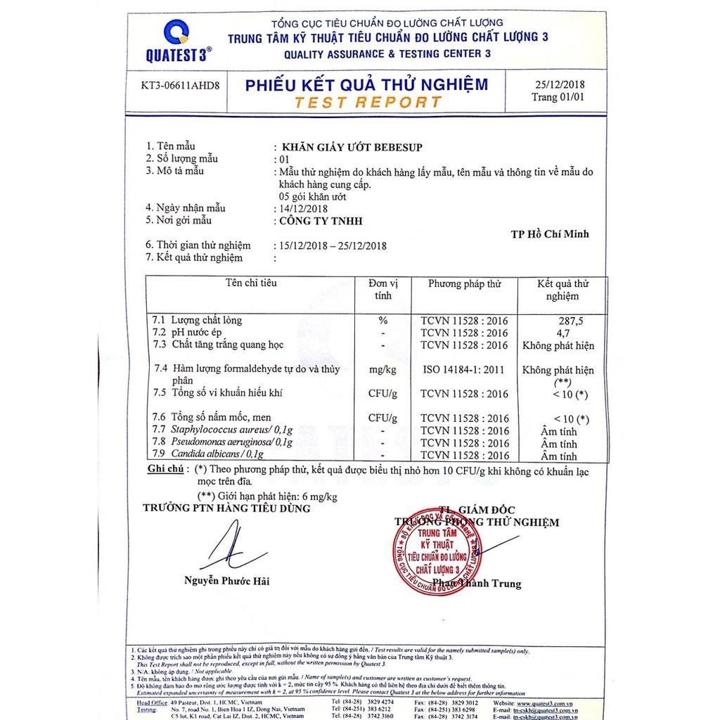 - Trung thực và minh bạch khi sử dụng các thành phần theo đạo luật mỹ phẩm. Tuyệt đối không dùng đến các thành phần có hại cho da gồm 15 chất như chất bảo quản paraben, CMIT, MITĐược viện kiểm tra và nghiên cứu KTV Hàn Quốc chứng nhận không có các chất độc hại trong sản phẩm khăn ướt của BEBESUP. Kích thước: 200x180 (+-5mm) Khăn ướt BEBESUP SENSITIVE 80 tờSố lượng khăn trong 1 gói: 80 tờ - 380g