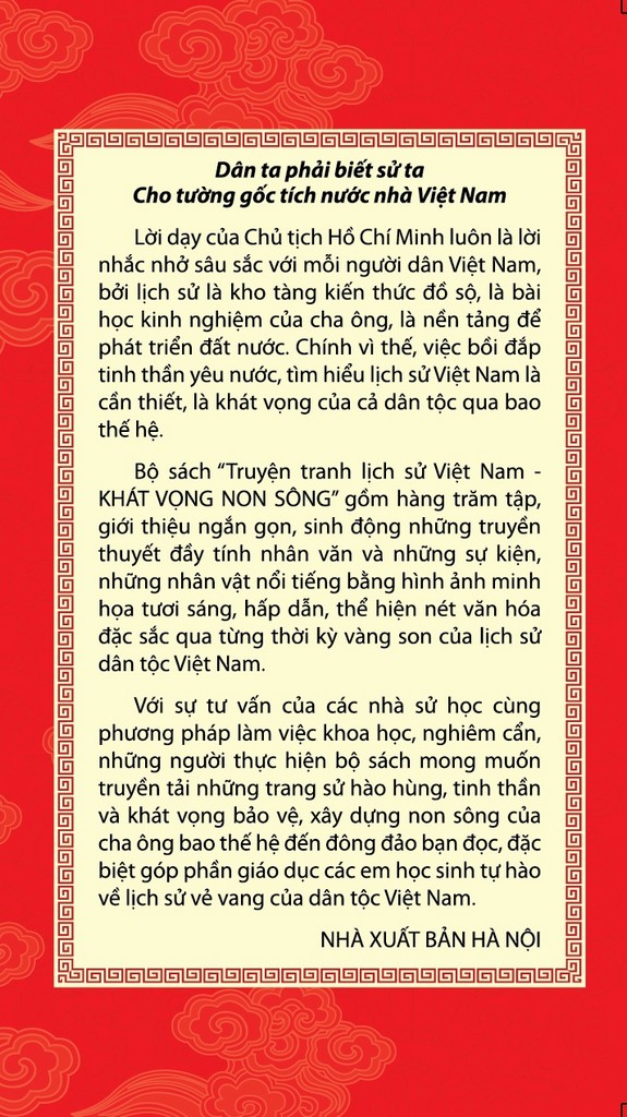 Bộ sách “Truyện tranh lịch sử Việt Nam – Khát vọng non sông” gồm hàng trăm tập, giới thiệu ngắn gọn, sinh động những truyền thuyết đầy tính nhân văn và những sự kiện, những nhân vật nổi tiếng trong lịch sử hàng nghìn năm của dân tộc Việt Nam. Bảng nhãn Lê Văn Hưu và Đại Việt Sử ký. Lê Văn Hưu là một nhà sử học đời nhà Trần. Ông và Quốc sử Viện đã biên soạn xong bộ Đại Việt sử ký gồm 30 quyển vào năm 1272, đó là bộ quôc sử đầu tiên của Việt Nam, góp phần to lớn trong việc tạo thành nền sử học Việt Nam suốt những thời kỳ về sau.