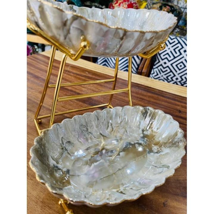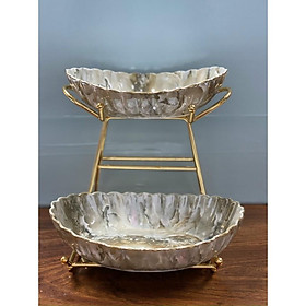 Khay đựng hoa quả, bánh kẹo, mứt Tết 2 tầng, 3 tầng bằng gốm sứ kèm đế kim loại mạ vàng cao cấp.