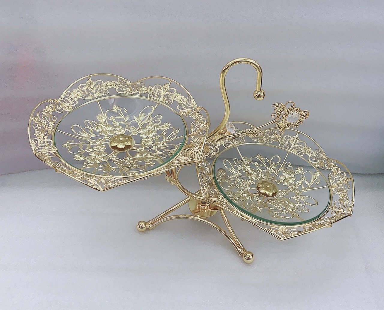 ✨KHAY ĐỰNG BÁNH KẸO HOA QUẢ THỦY TINH 2 TẦNG KHUNG KIM LOẠI DÁNG NGANG - VD29